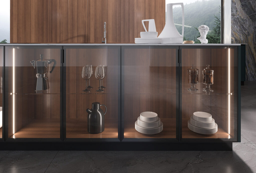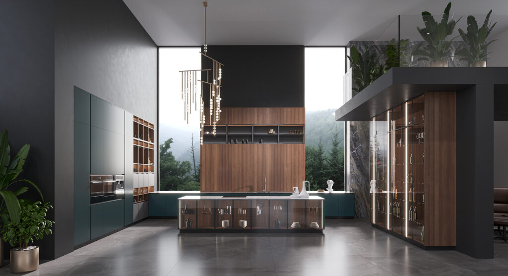 Our high-end kitchen cabinets also boast practical and aesthetically pleasing features, such as open cabinets and glass cabinets with integrated lighting. These elements provide easy access to your most-used items and showcase your beautiful glassware and dinnerware, adding elegance and sophistication to your daily routine.