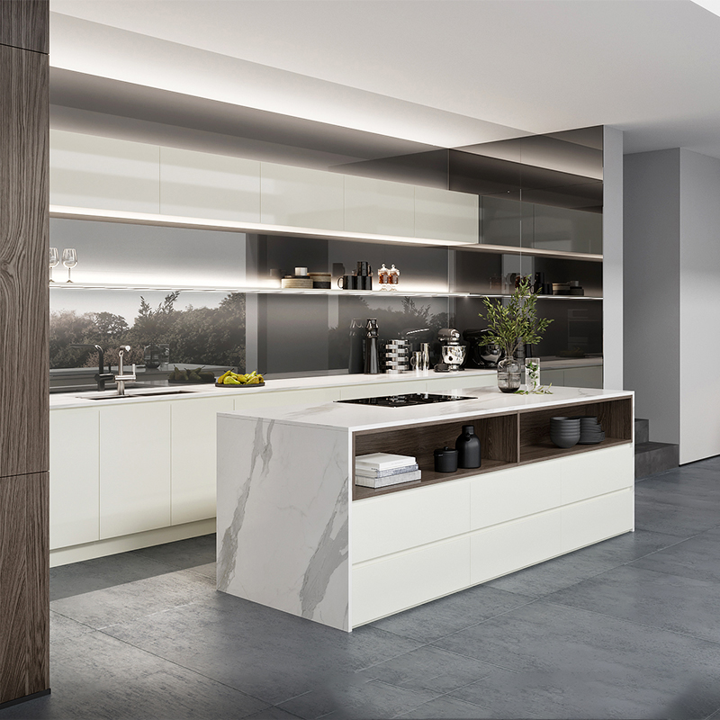 White Parallel Kitchens With Handleless Cabinets